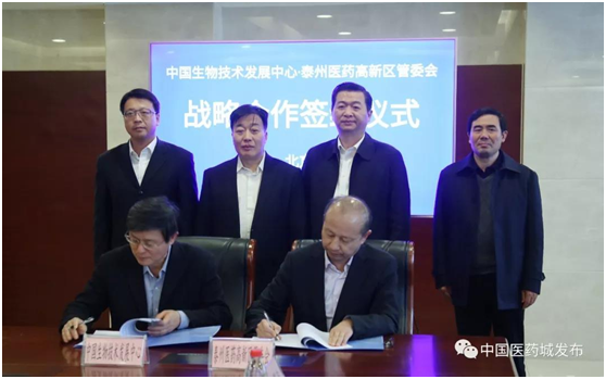 2018年11月29日,中国生物技术发展中心(以下简称生物中心)与泰州医药高新技术产业园区在北京举行战略合作协议签字仪式。